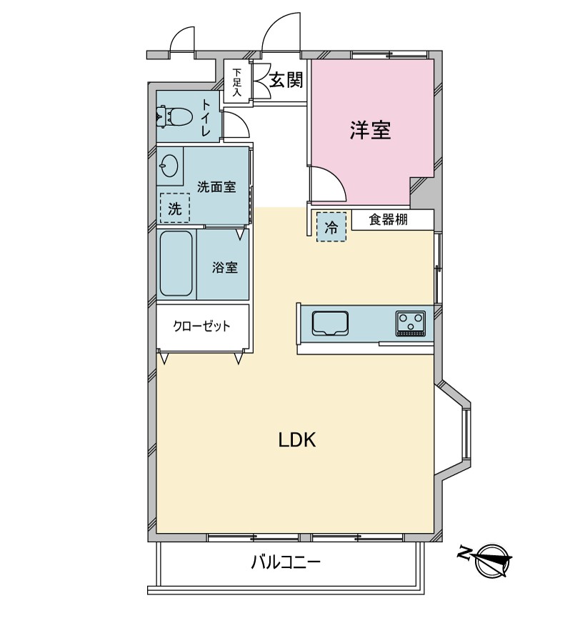 専有面積:44.12㎡(登記簿) / バルコニー面積:4.90㎡ |
